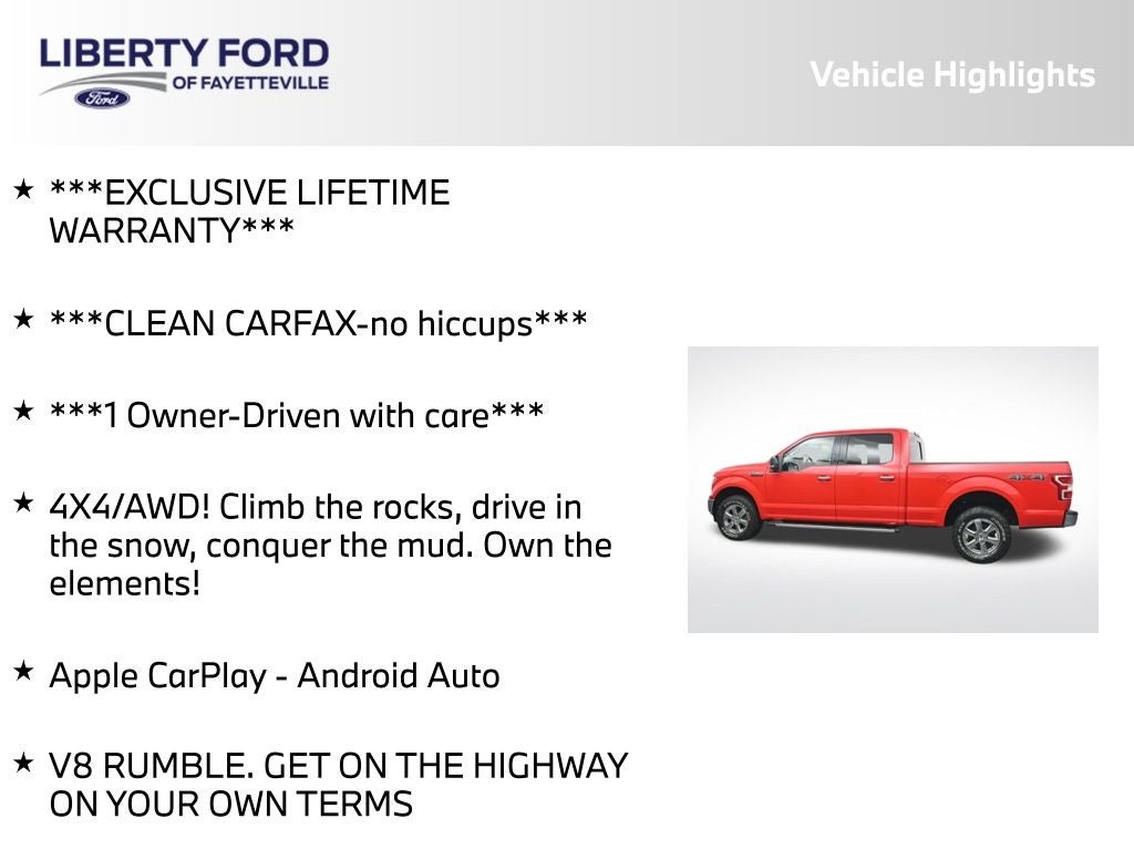 Experience the power and refinement of the 2020 Ford F-150 XLT. Visit us today at Liberty Ford Fayetteville and let us show you why this truck is the ultimate choice for your next adventure. We love our troops, and we're here to help you find the perfect vehicle to conquer the road ahead.